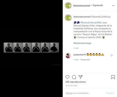 Publicaciones en redes sociales de Bienestar Universitario 2020